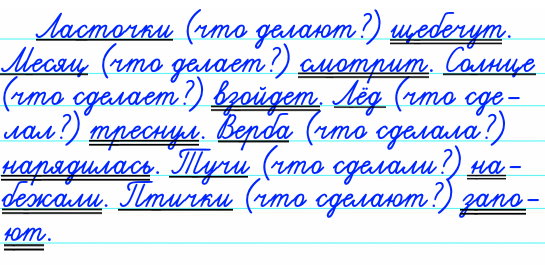 - Дайте совет однокласснику, как найти в предложениях глаголы. Назовите каждый глагол и вопрос, на который этот глагол отвечает.