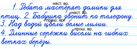 - Запишите предложения, ставя глагол в форму настоящего или прошедшего времени. Укажите над каждым глаголом время.