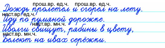 - Спишите первое четверостишие. Проверьте себя. Определите время и число глаголов.