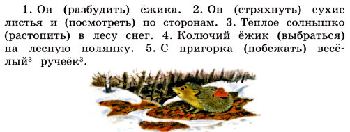 Тёплое солнышко растопило в лесу снег. С пригорка побежал весёлый ручеёк. Он разбудил ёжика. Колючий ёжик выбрался на лесную полянку. Он стряхнул сухие листья и посмотрел по сторонам. Всё вокруг ожило. Наступала весна. Пора было просыпаться от зимней спячки.