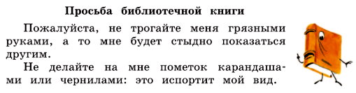 - Обсудите, какие еще просьбы могут быть у библиотечной книги к читателям.