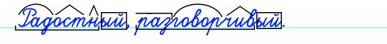 Прилагательные: далёкий, зелёный, радостный, разговорчивый.