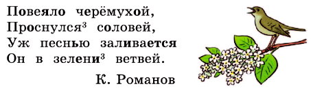 Существительные: черёмухой, соловей, песнью, зелени, ветвей.
