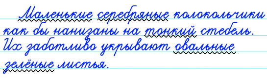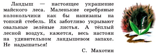 - Спишите описание ландыша. Проверьте себя. Подчеркните в предложении имена прилагательные.