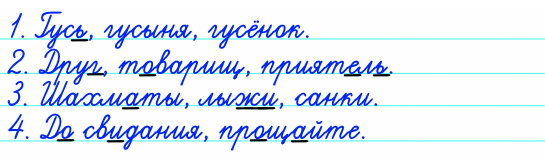 - Спишите слова каждого ряда без лишнего слова. Подчеркните в словах изученные орфограммы.