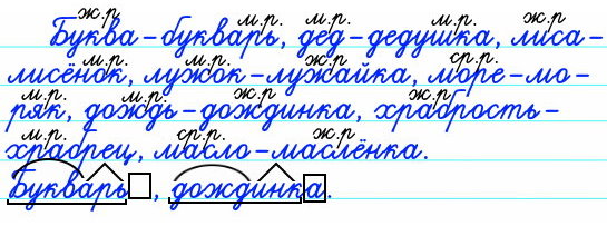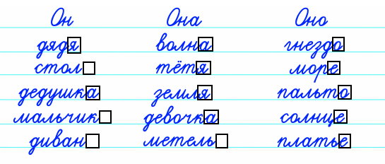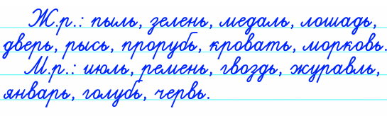 - Запишите имена существительные в таком порядке: сначала имена существительные женского рода, затем мужского рода. Проверьте себя.