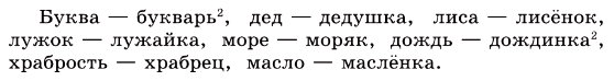 Сходство слов в паре заключается в том, что у них общий корень, поскольку слова являются однокоренными; различие же заключается в том, что вторые слова всех пар содержат суффиксы, а первые слова пар суффиксов не имеют.