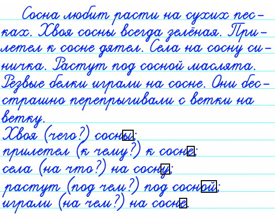 - На какие вопросы отвечает имя существительное сосна в других предложениях? Выпишите его вместе с теми словами, от которых ставили вопросы к этому имени существительному.