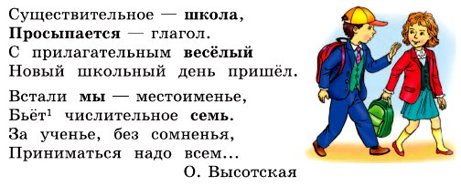 - Какие части речи названы в стихотворении? Какие еще части речи вам известны?