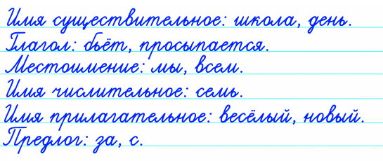 - Выпишите из стихотворения 1-2 слова, которые относятся к данным частям речи.