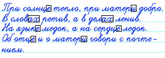 - Запишите пословицы. Выделите окончания имен существительных в предложном падеже. Подчеркните предлоги.