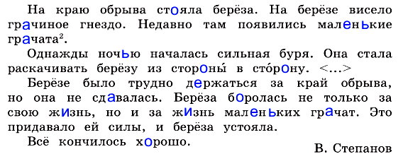 Тема текста: история о берёзе, которая устояла во время бури и спасла грачат.