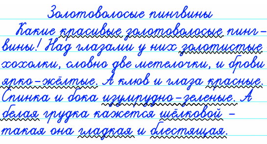 - Запишите заголовок и текст, вставляя пропущенные буквы. Подчеркните имена прилагательные. С какой целью употреблены имена прилагательные в тексте?
