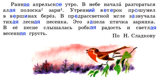 - Запишите заголовок и текст, вставляя пропущенные буквы. Укажите род имен прилагательных, выделите их окончания.