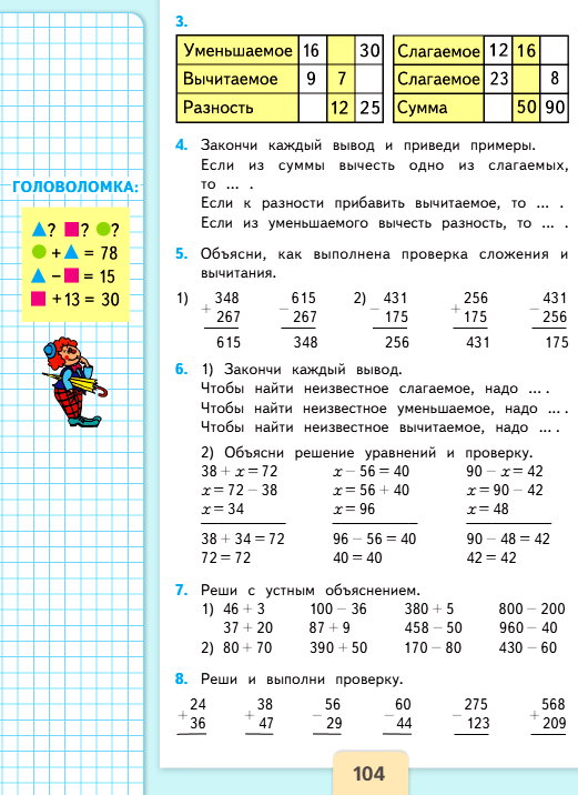 Чтобы найти неизвестное слагаемое, надо из суммы вычесть другое слагаемое.