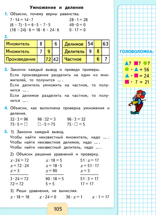 Проверка: Если делитель умножить на частное, то получится делимое. Если делимое разделить на частное, то получится делитель.