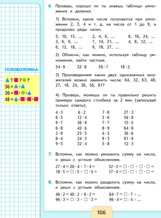 1) Вспомни, какие числа получаются при умножении 2, 3, 4 и т. д. на числа от 1 до 9, и продолжи ряды чисел.