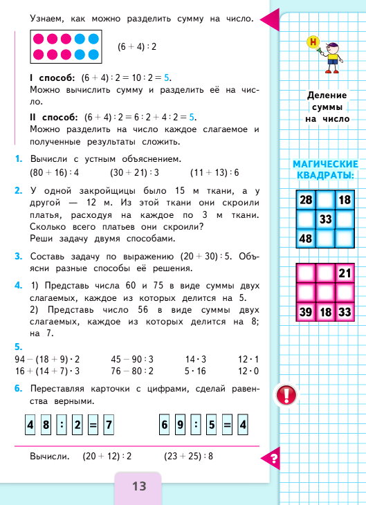 Найдём сумму чисел 11 и 13, которая равна 24, и разделим её на 6.