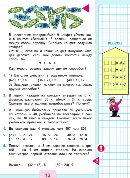 2) 40 : 10 = 4 (п.) – учебников по географии.
