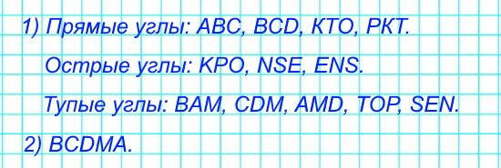 1) Найди в многоугольниках прямые, острые и тупые углы. Выпиши их названия.
