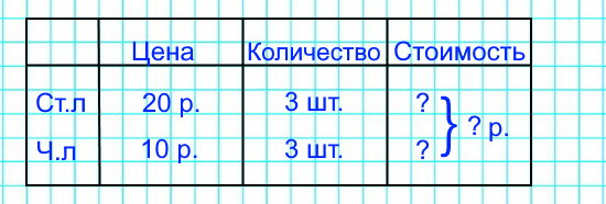 1) 20 ∙ 3 = 60 (р.) – столовые ложки.