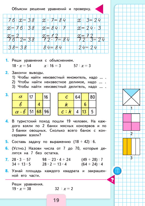 3) 4 : 4 ∙ 3 = 3 см2 – закрашено во 2-ом квадрате.