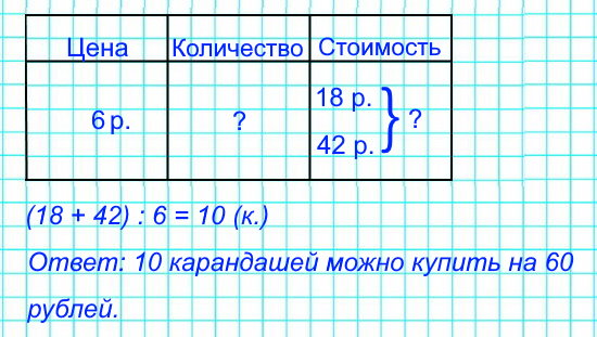 У Вани 18 рублей, у Кати — 42. Они хотят купить карандаши по 6 рублей. Сколько карандашей они смогут купить на все деньги?
