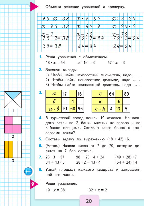 3) 4 : 4 ∙ 3 = 3 см2 – закрашено во 2-ом квадрате.