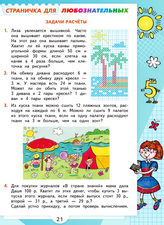 2) 6 ∙ 1 + 3 ∙ 4 = 18 (м) – на обивку 1 дивана и 4 пар кресел.