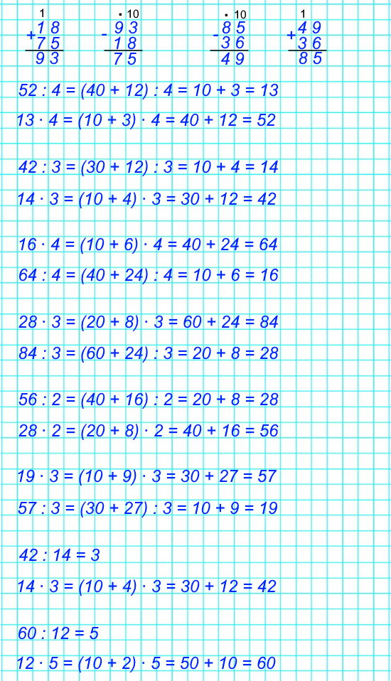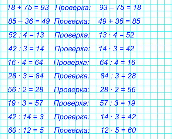 №1. Вычисли и выполни проверку.