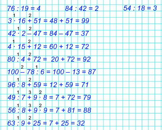 - Из числа 75 вычесть частное чисел 54 и 3.
