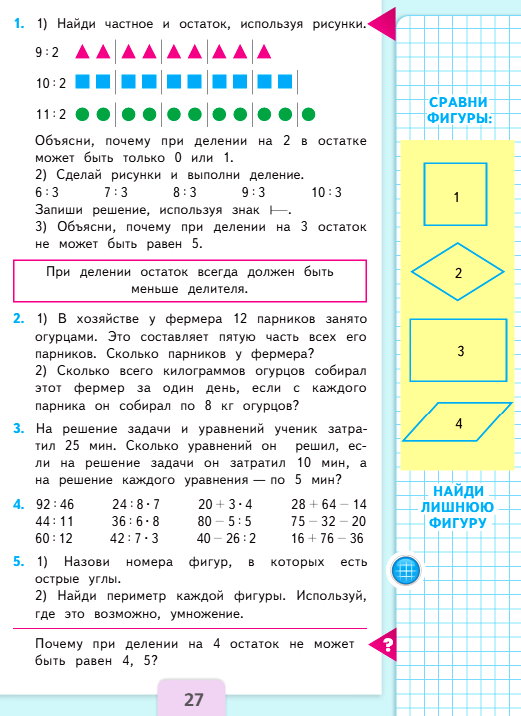 3) Объясни, почему при делении на 3 остаток не может быть равен 5.