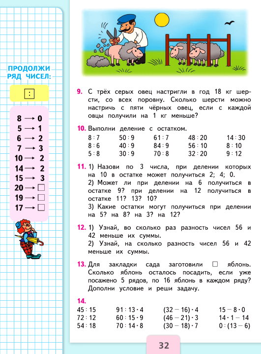 32 : 10 = 3 (ост. 2)