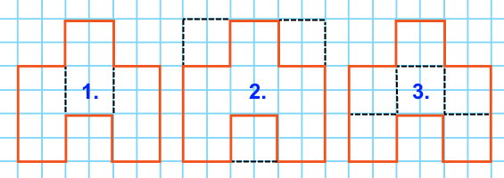 9 – 1 ∙ 3 = 6 (см2). - Разделим фигуру на 6 одинаковых квадратов со стороной 1 см2. Площадь фигуры равна: