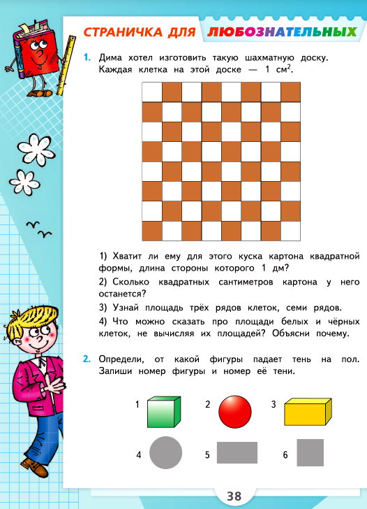 64 < 100 – куска картона квадратной формы хватит для изготовления шахматной доски. - 100 – 64 = 36 (см2) – останется.