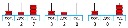 408 – четыреста восемь (4 сотен, 0 десятков, 8 единиц)
