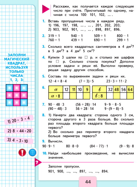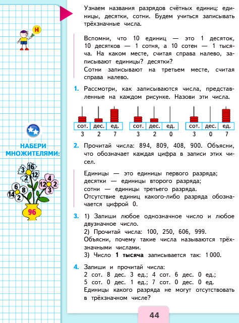 894 – восемьсот девяносто четыре (8 сотен, 9 десятков, 4 единицы)