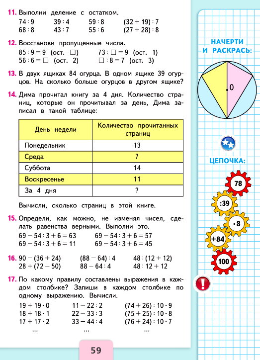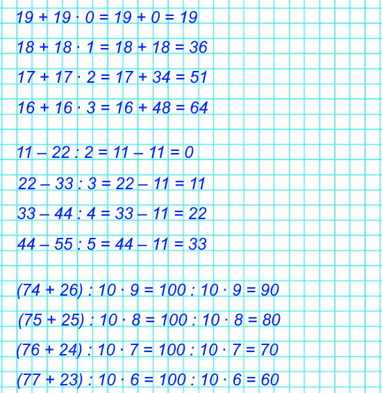 №17. По какому правилу составлены выражения в каждом столбике? Запиши в каждом столбике по одному выражению. Вычисли.
