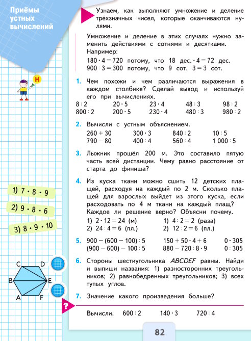 При умножении или делении трёхзначных чисел, оканчивающихся нулями, можно временно «забыть» про нули, выполнить действие с оставшейся частью числа как с однозначным, а затем вернуть нули в ответ.