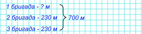 1) 700 – 230 = 470 (м) – заасфальтировала первая и вторая бригада.