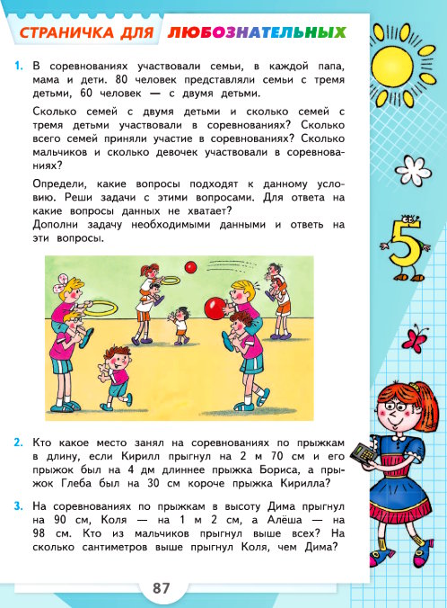 Определи, какие вопросы подходят к данному условию. Реши задачи. Для ответа на какие вопросы данных не хватает? Дополни задачу необходимыми данными и ответь на эти вопросы.