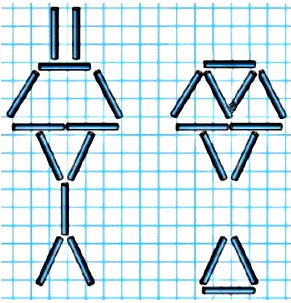 №9. Как переложить 3 палочки, чтобы получилось 5 одинаковых треугольников?