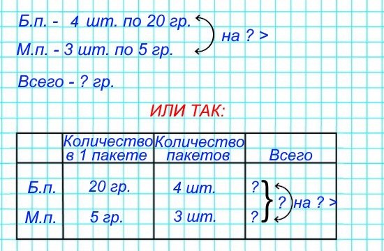 2) 5 ∙ 3 = 15 (гр.) – в маленьких пакетах.