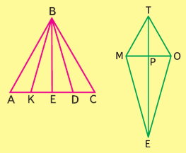 1) ABK, ABE, ABD, KBE, KBC, EBD, EBC, DBC, MTP, TPO, MPE, EPO, ETM, ETO.