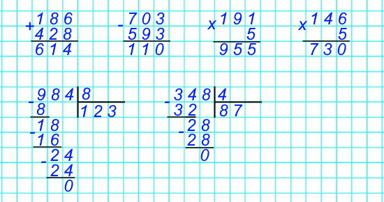 1) 741 + 239 = 980
